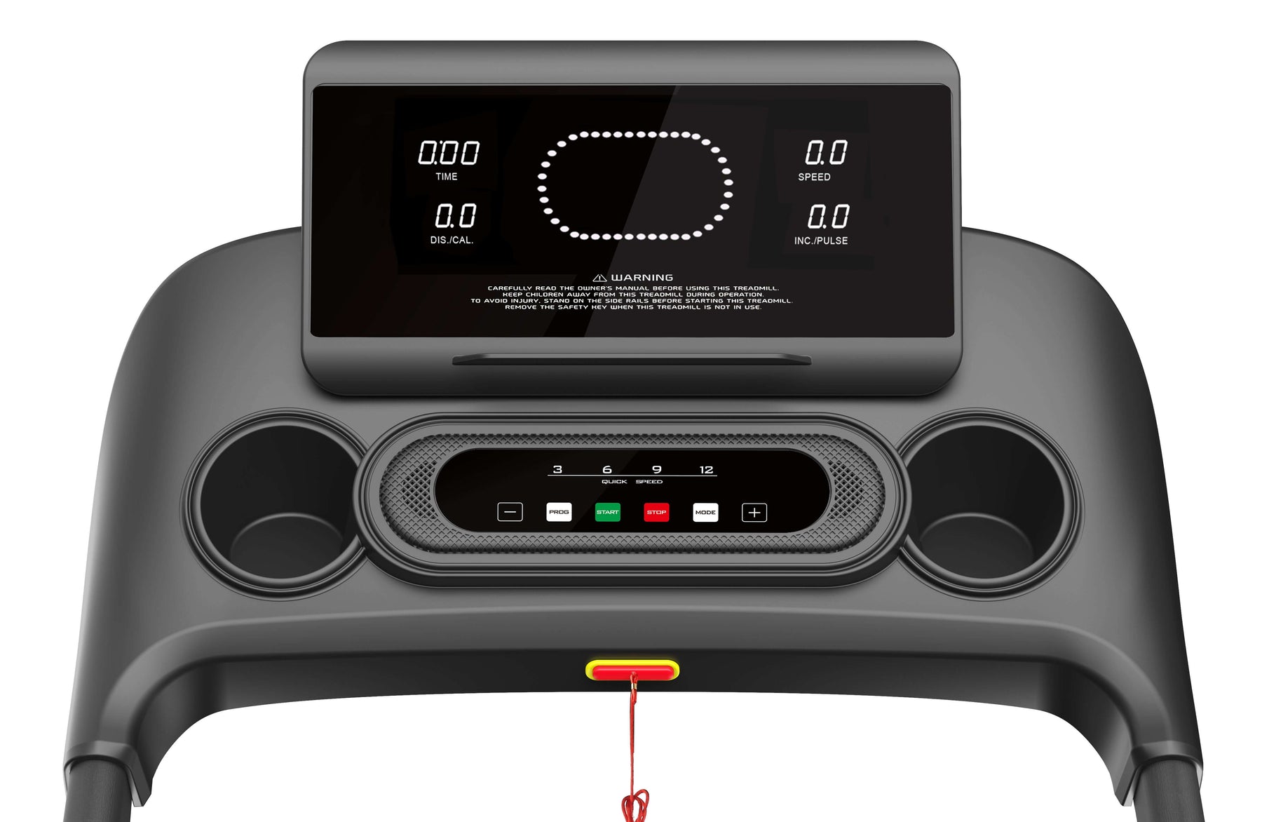 X-RIVAL Treadmill Max Motion K5451 control panel with display and cup holders for an enhanced workout experience.